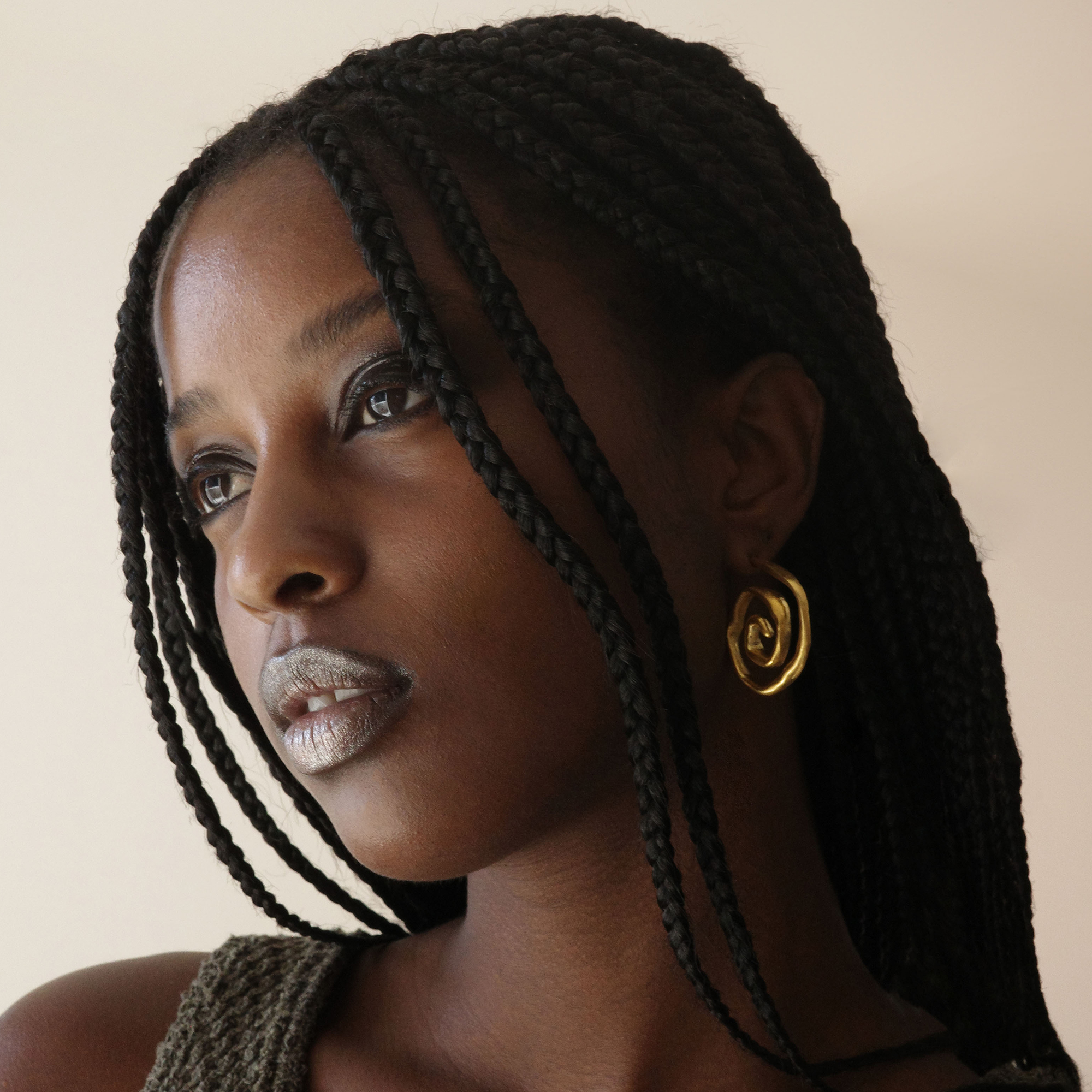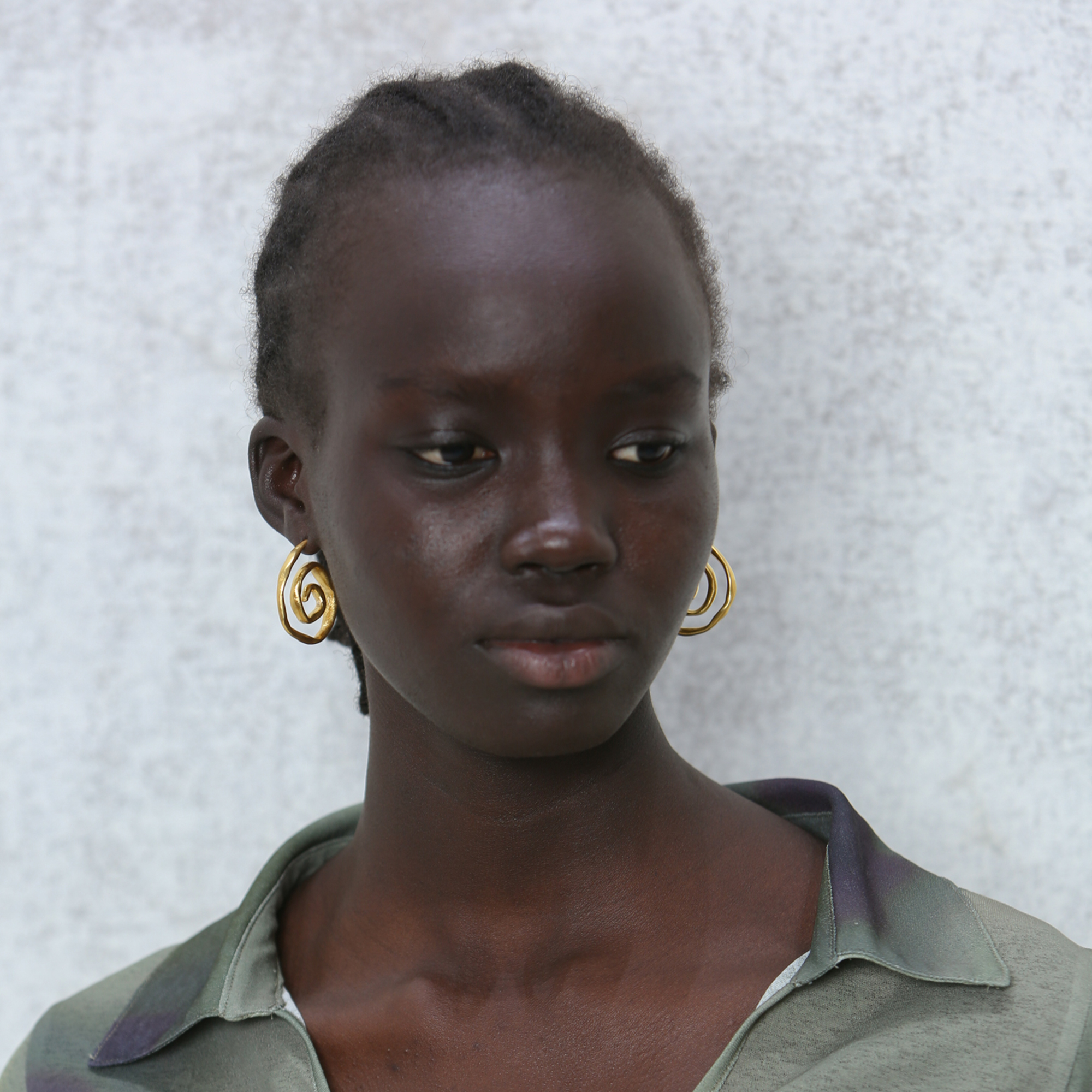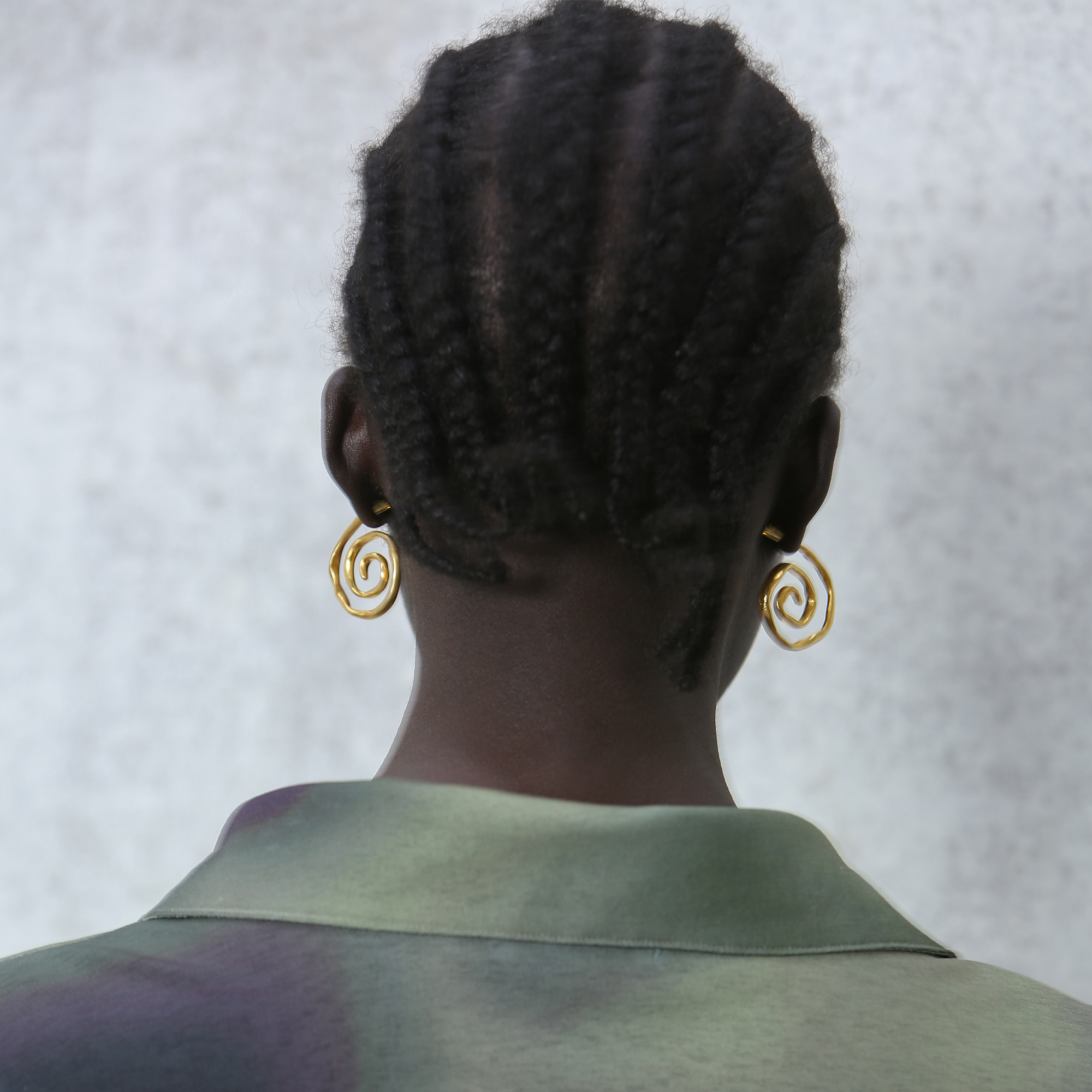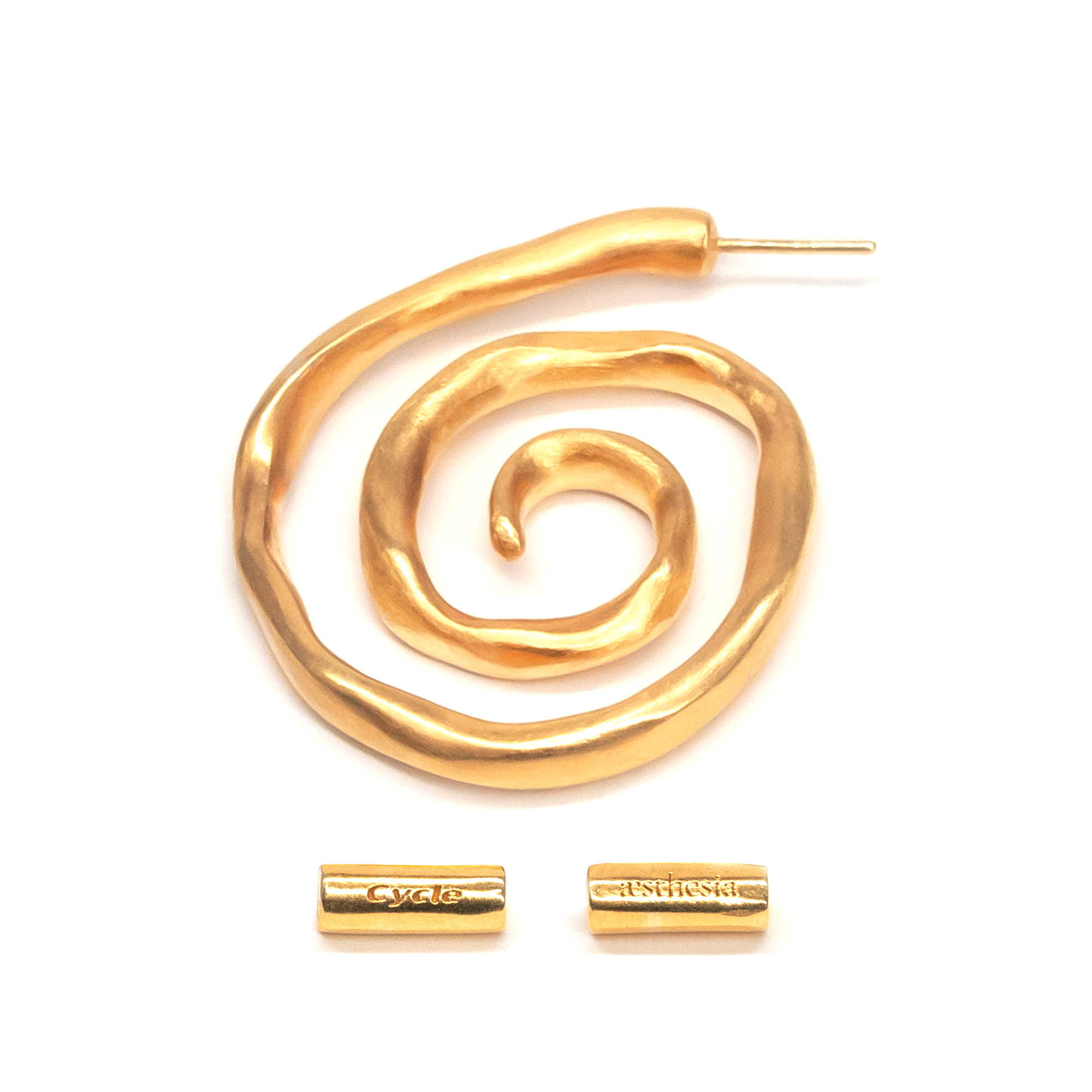 大きめサイズのスパイラル形状のゴールドイヤリングです。